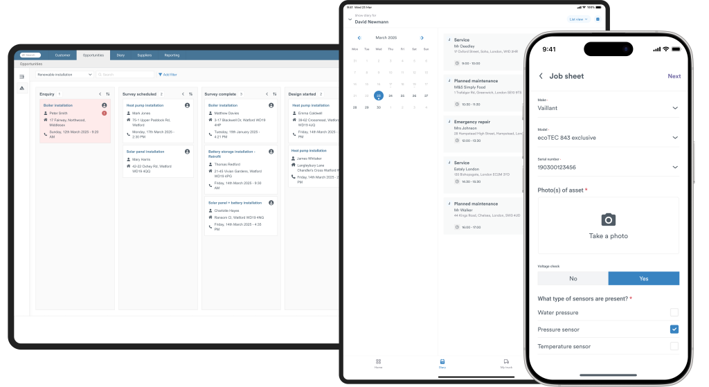 Jobs get completed faster when your team works together, and information is real-time. That’s why we designed Commusoft around your three stakeholders.