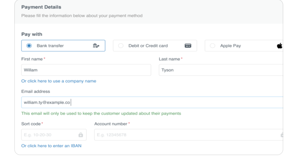 Your team can set monetary limits for when certain integrations are implemented. For example, if a charge is over £1,000, GoCardless will be offered instead of Stripe; meaning you won’t have to pay large credit card fees.