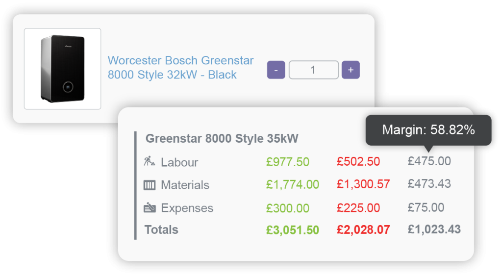 Putting the right pricing information in front of your salespeople not only guarantees profit, but can help your team maximise it. With Commusoft’s comprehensive budgeting tools, any cost you will incur for a job is detailed and logged against the proposal. Combined with your proposed prices, you’ll see expected profit and margins, making it easy to review and optimise on the fly without need for a calculator.